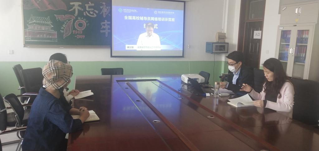 4月30日上午,bat365官方网站党委副书记侯彩霞组织全体辅导员班主任在虎峪校区致明楼206会议室参加全国高校辅导员网络培训示范班的结业仪式。