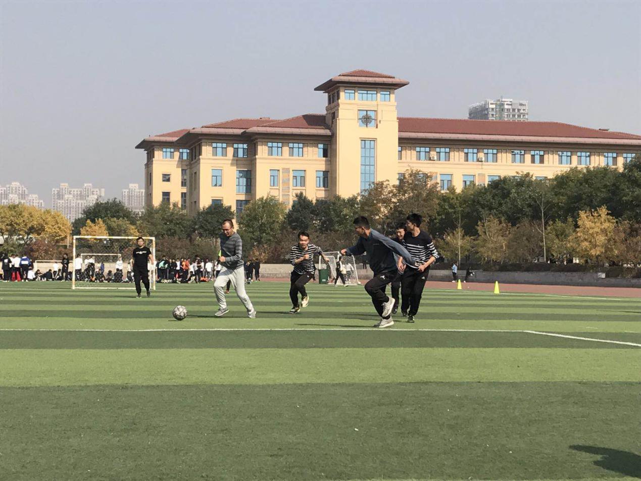 师生足球赛中教师代表队以6:5险胜研究生代表队。绿茵场上教师与同学们一同挥洒汗水,体现了bat365官网师生的勇于拼搏,力争上游的精神风貌,也拉近了师生间的距离,促进了情感交流。