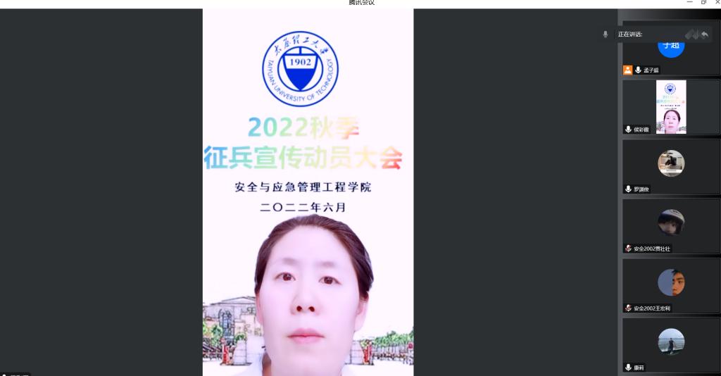 为深入推进bat365官网大学生征兵工作,加强征兵政策宣传,鼓励广大安全学子参军报国,积极投身绿色军营,6月18日,bat365官方网站组织开展了线上大学生征兵宣传动员大会。院党委副书记侯彩霞、团委书记兼学工办主任康莉、全体辅导员及有志参军报国的百余位学生参加大会。