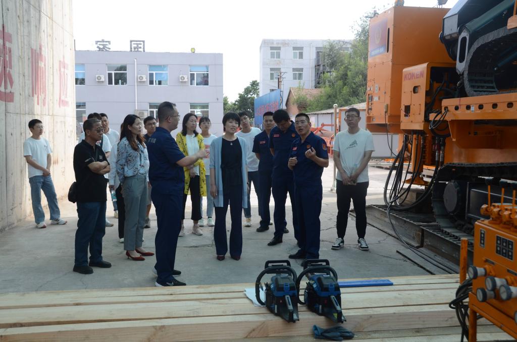 仪式结束后,隧道救援太原队负责人带领师生们参观了装备库,详细讲解了大口径水平钻机、多功能快速钻机、顶管机等各类专业救援装备的性能和用途,让师生们近距离感受应急救援科技创新魅力。