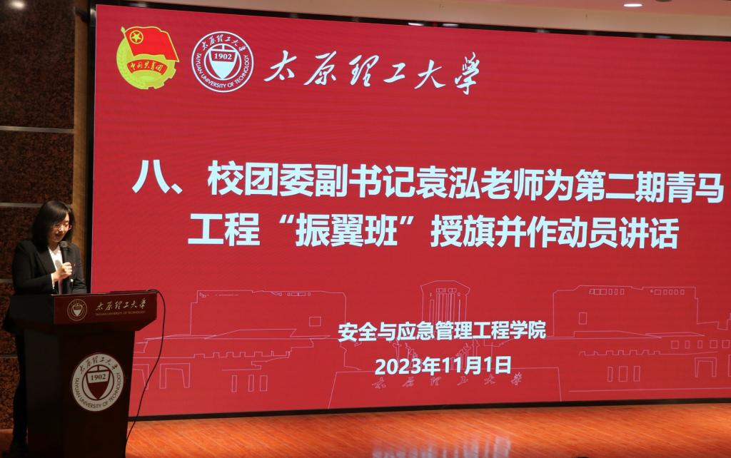 会议伊始,全体起立奏唱中国共产主义青年团团歌。随后,康莉从学院青马工程“振翼班”学员选拔标准和流程的制定,“理论学习、参观学习、能力提升和实践锻炼”四个环节培养方案的制定和这一年来按照方案扎实推进特色活动的开展,以及取得的育人成效等四个方面介绍了第一期青马工程“振翼班”整体情况。第一期“振翼班”优秀学员、成功入选我校第二十六届研究生支教团并担任队长、入选2023年山西省“青马工程”高校班学员、现任校学生会主席团成员的杨政从理论学习、实践锻炼、素质提升等多个角度分享了他这一年的学习经验和心得体会,他的卓越的表现也为全体同学树立了榜样。